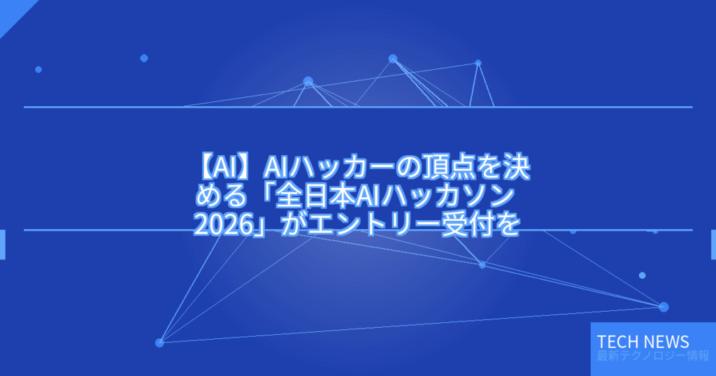 【AI】AIハッカーの頂点を決める「全日本AIハッカソン 2026」がエントリー受付を開始/オンライン・オフラインで予選を開催、現在東京会場の参加者を受付中