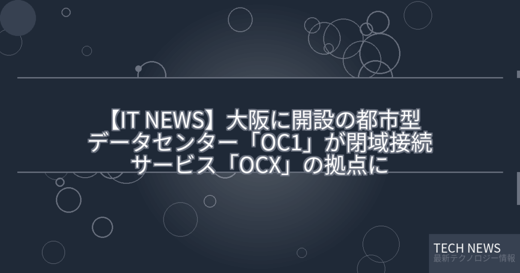 【IT NEWS】大阪に開設の都市型データセンター「OC1」が閉域接続サービス「OCX」の拠点に