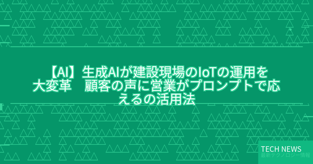 【AI】生成AIが建設現場のIoTの運用を大変革 顧客の声に営業がプロンプトで応えるの活用法