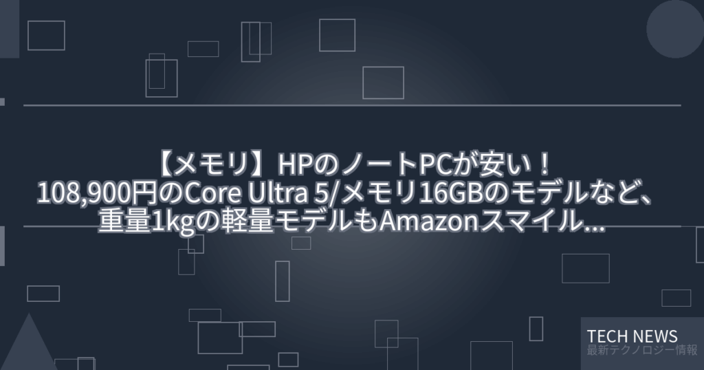【メモリ】HPのノートPCが安い!108,900円のCore Ultra 5/メモリ16GBのモデルなど、重量1kgの軽量モデルもAmazonスマイルSALE本日みつけたお買い得情報