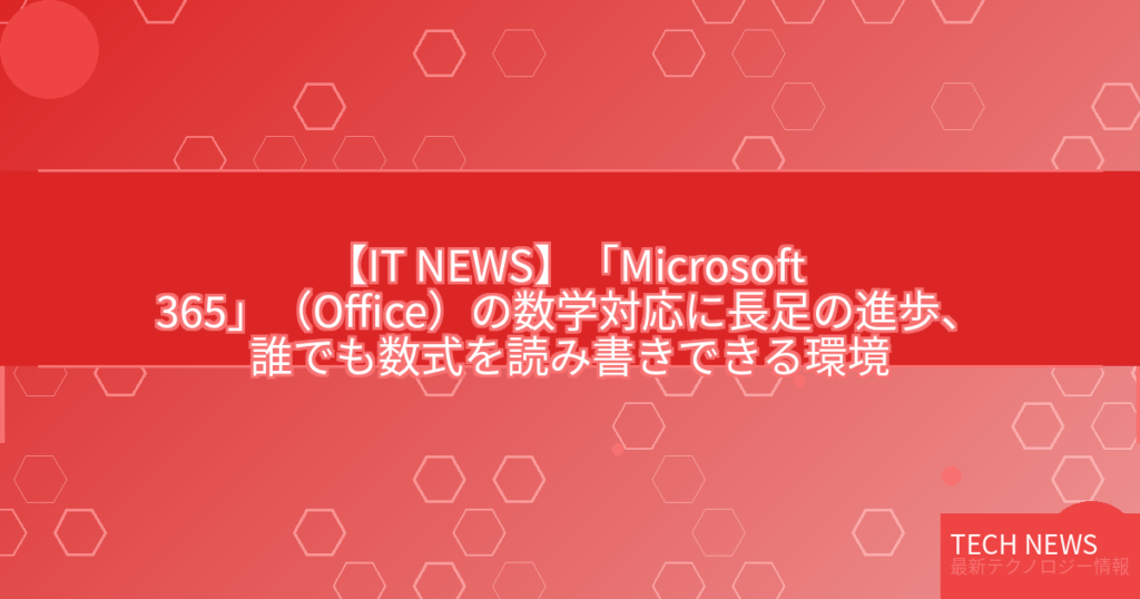 「Microsoft 365」(Office)アプリでは、『誰でも数学を読み書きできる環境』を目指した多くの改善が導入されている。米Microsoftが2月2日(現地時間)、2025年9月に続く進展を、公式ブログ「Microsoft 365 Insider」で解説している。 -