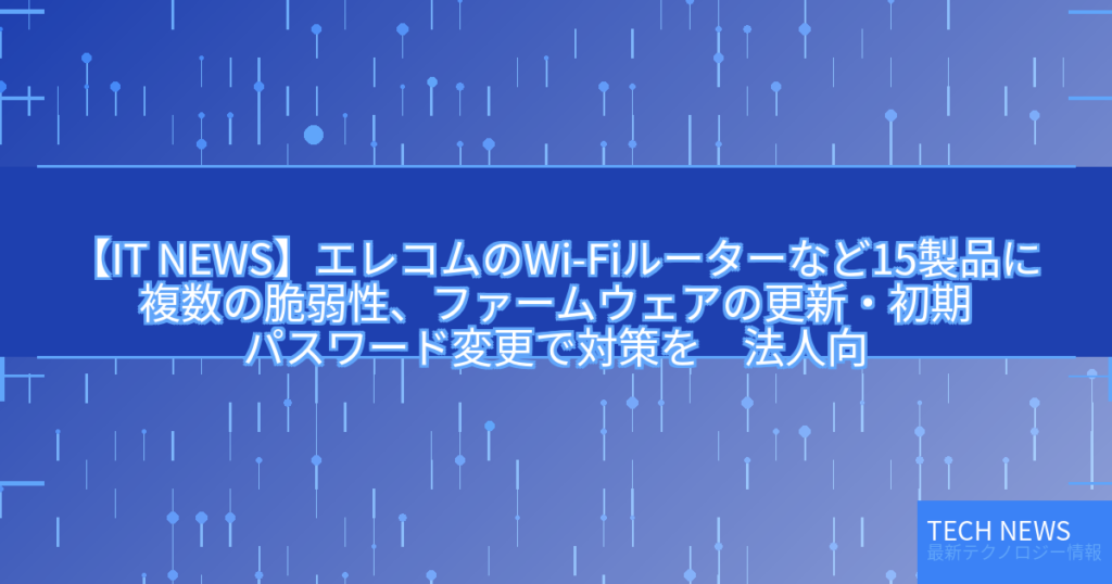 【IT NEWS】エレコムのWi-Fiルーターなど15製品に複数の脆弱性、ファームウェアの更新・初期パスワード変更で対策を 法人向けAP「WAB-S733IW-PD」「WAB-S300IW-PD」は使用を停止し買い替えを