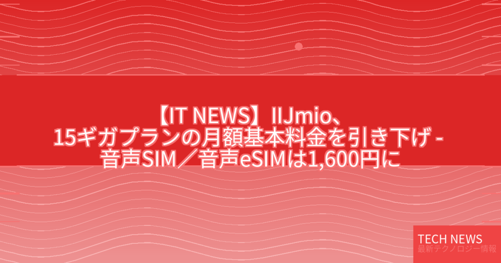 【IT NEWS】IIJmio、15ギガプランの月額基本料金を引き下げ – 音声SIM/音声eSIMは1,600円に