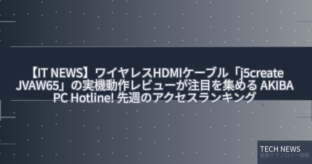 【IT NEWS】ワイヤレスHDMIケーブル「j5create JVAW65」の実機動作レビューが注目を集める AKIBA PC Hotline! 先週のアクセスランキング 26年1月26日~26年2月2日