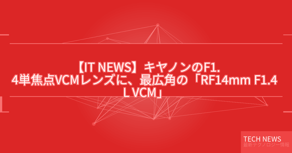 【IT NEWS】キヤノンのF1.4単焦点VCMレンズに、最広角の「RF14mm F1.4 L VCM」