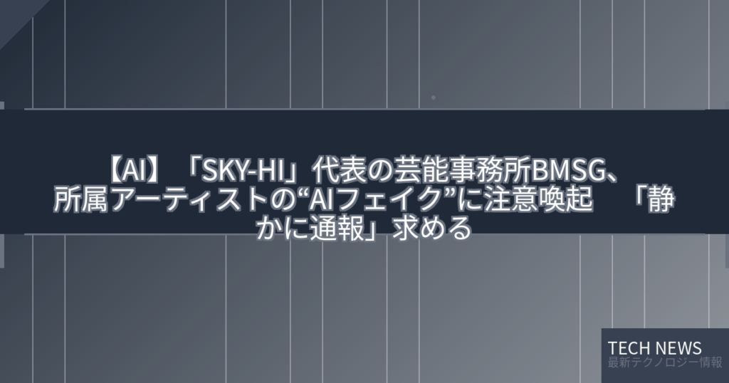 【AI】「SKY-HI」代表の芸能事務所BMSG、所属アーティストの“AIフェイク”に注意喚起 「静かに通報」求める