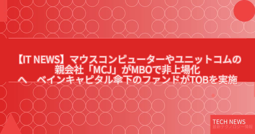 【IT NEWS】マウスコンピューターやユニットコムの親会社「MCJ」がMBOで非上場化へ ベインキャピタル傘下のファンドがTOBを実施