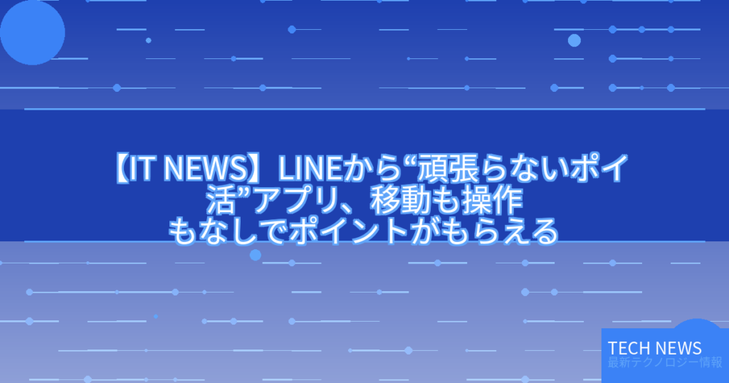 【IT NEWS】LINEから“頑張らないポイ活”アプリ、移動も操作もなしでポイントがもらえる