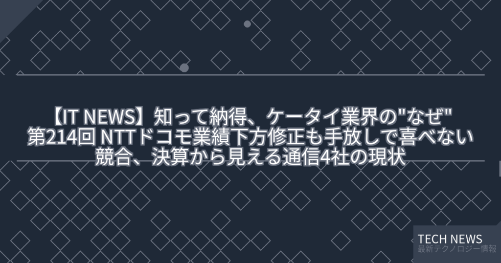 【IT NEWS】知って納得、ケータイ業界の”なぜ” 第214回 NTTドコモ業績下方修正も手放しで喜べない競合、決算から見える通信4社の現状