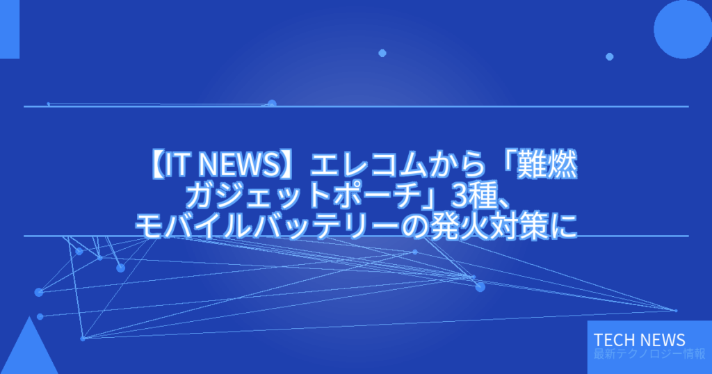 【IT NEWS】エレコムから「難燃ガジェットポーチ」3種、モバイルバッテリーの発火対策に