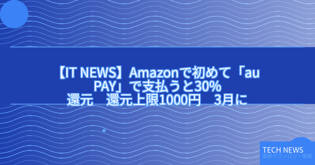 【IT NEWS】Amazonで初めて「au PAY」で支払うと30%還元 還元上限1000円 3月に