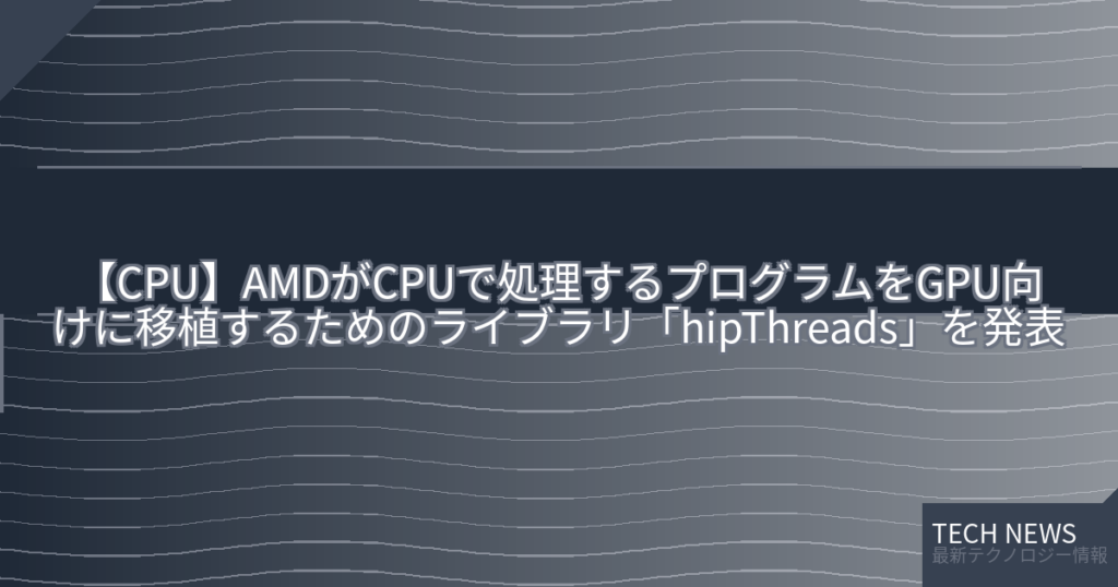 AMDがCPUで処理することを前提に書かれたC++コードをAMD製GPUで実行できるように移植できるC++スタイル並列処理ライブラリ「hipThreads」を発表しました。 -