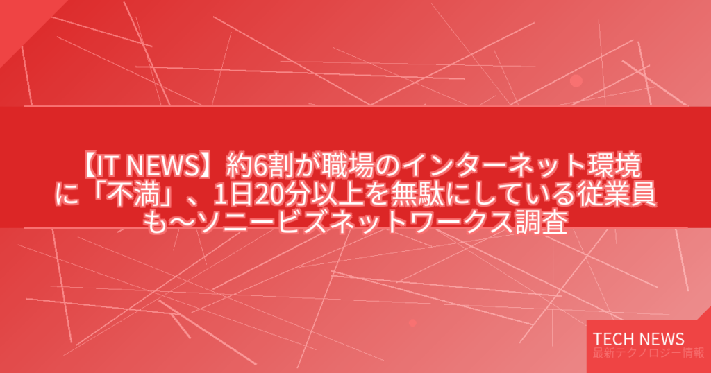 【IT NEWS】約6割が職場のインターネット環境に「不満」、1日20分以上を無駄にしている従業員も~ソニービズネットワークス調査