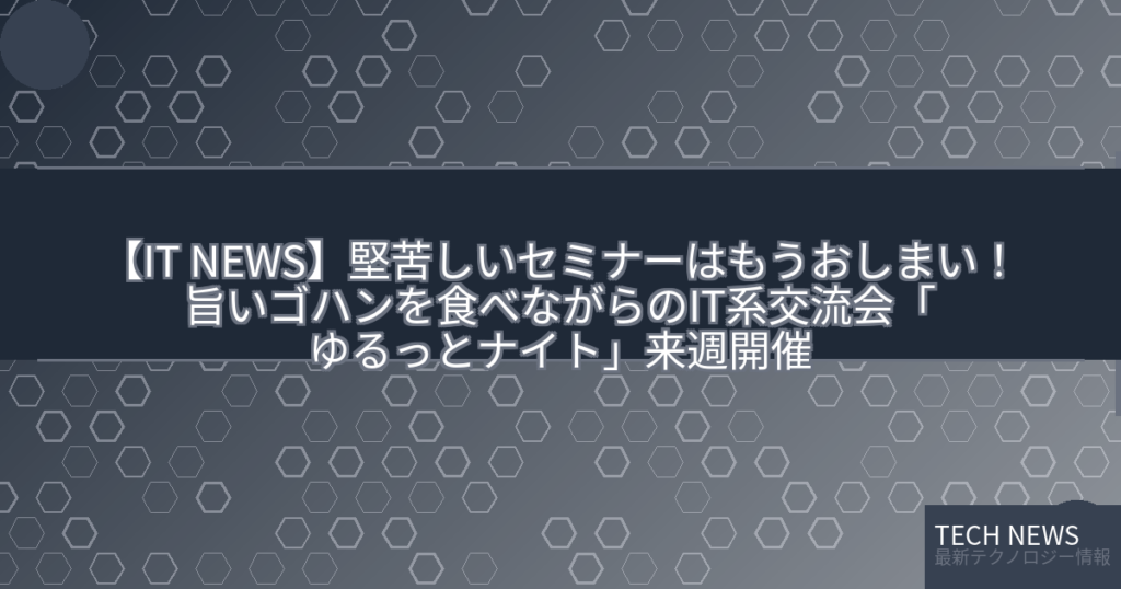 【IT NEWS】堅苦しいセミナーはもうおしまい!旨いゴハンを食べながらのIT系交流会「ゆるっとナイト」来週開催