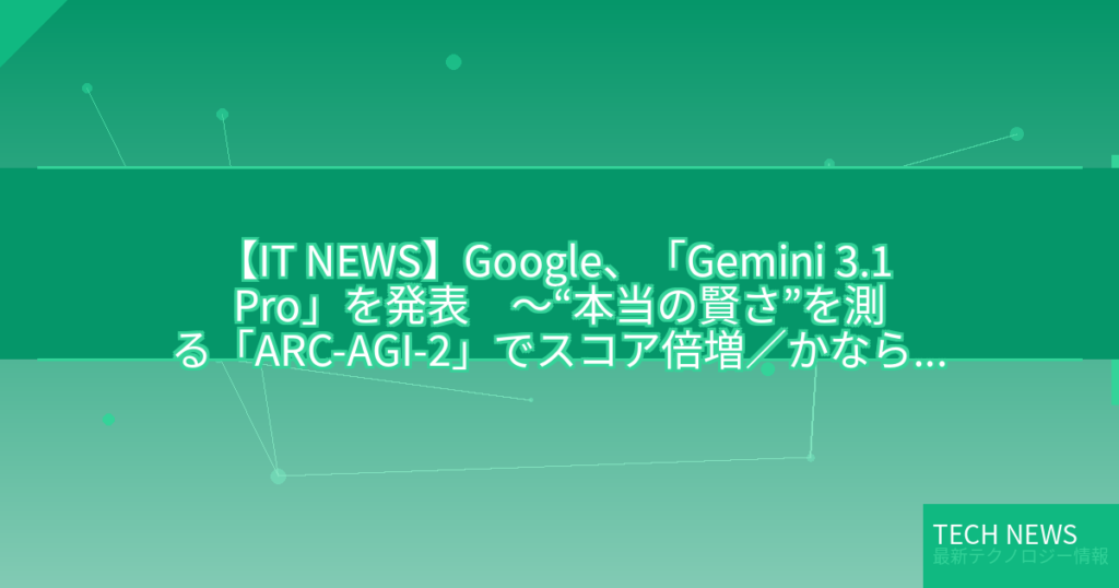 【IT NEWS】Google、「Gemini 3.1 Pro」を発表 ~“本当の賢さ”を測る「ARC‑AGI‑2」でスコア倍増/かならずしも答えがあるとは限らない、複雑な課題で高い能力を発揮