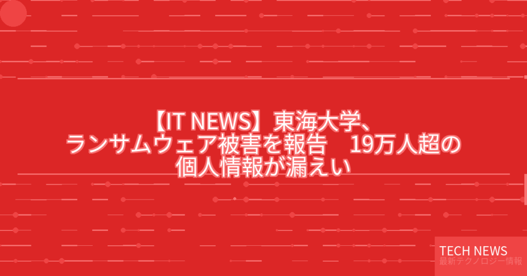 【IT NEWS】東海大学、ランサムウェア被害を報告 19万人超の個人情報が漏えい