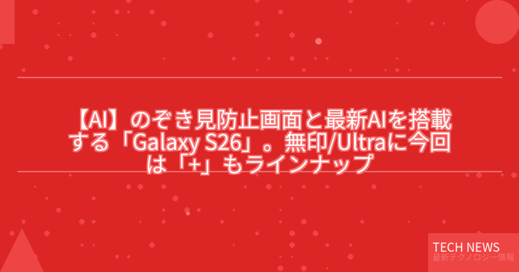 【AI】のぞき見防止画面と最新AIを搭載する「Galaxy S26」。無印/Ultraに今回は「+」もラインナップ