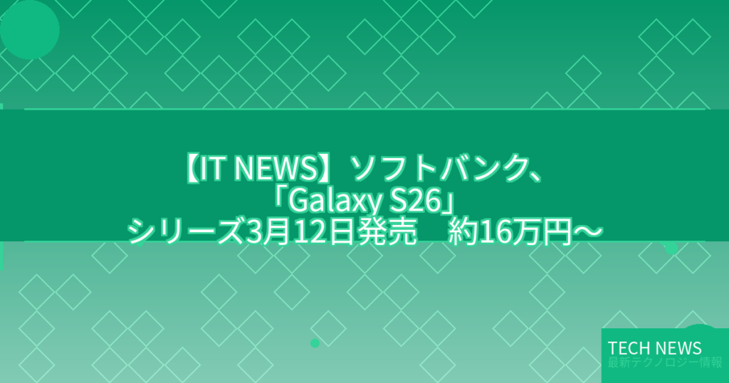 【IT NEWS】「Samsung Galaxy S26 Ultra」3月12日発売、周りから見えなくなる“プライバシー画面”機能を搭載