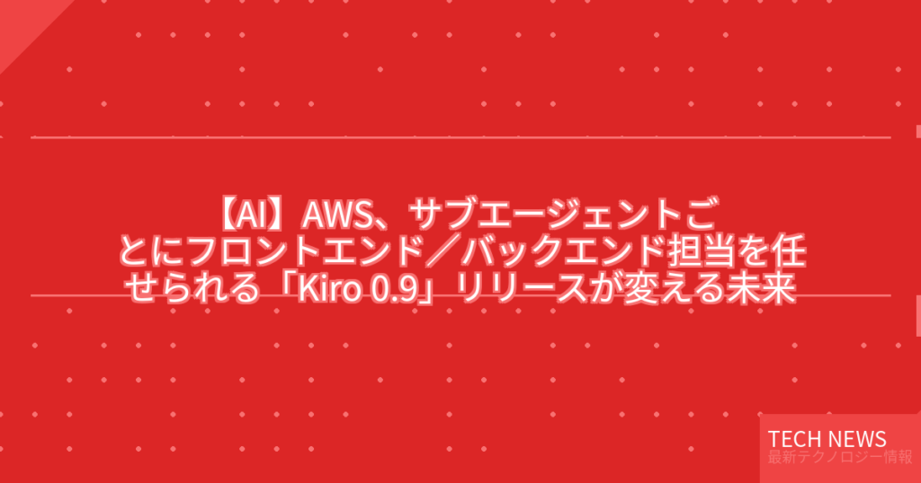 【AI】AWS、サブエージェントごとにフロントエンド/バックエンド担当を任せられる「Kiro 0.9」リリースが変える未来