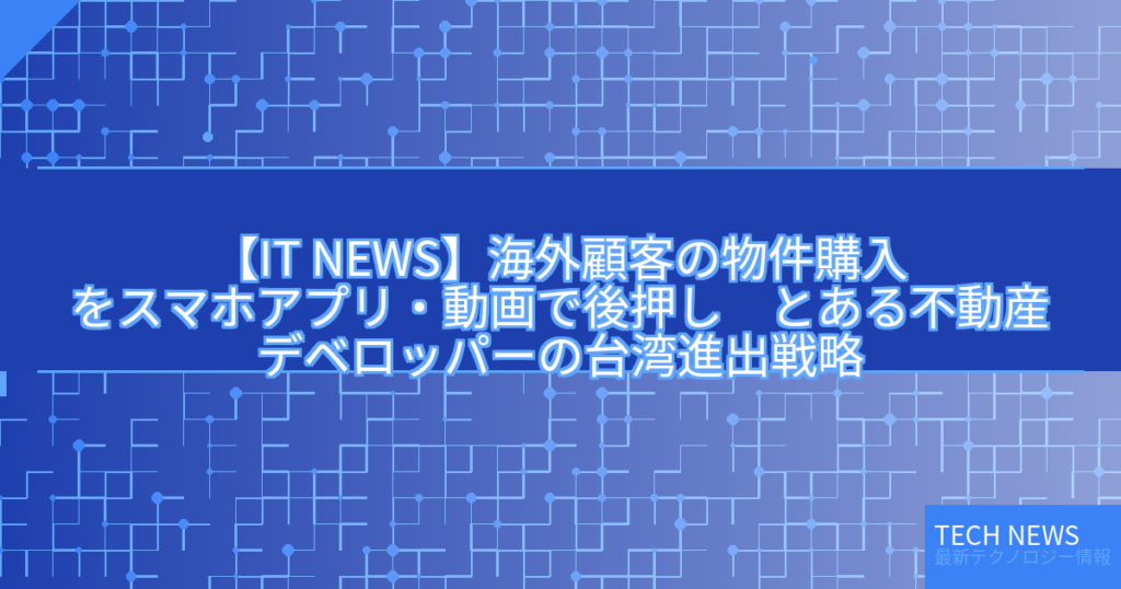 【IT NEWS】海外顧客の物件購入をスマホアプリ・動画で後押し とある不動産デベロッパーの台湾進出戦略