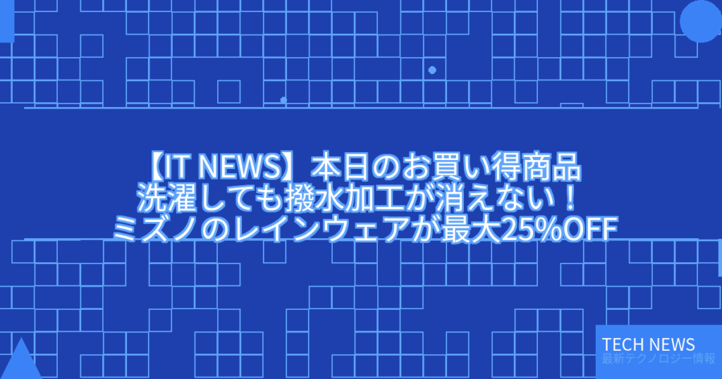【IT NEWS】本日のお買い得商品 洗濯しても撥水加工が消えない! ミズノのレインウェアが最大25%OFF