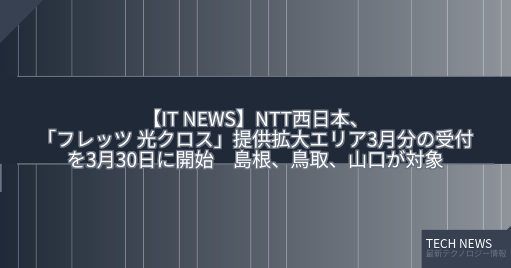 【IT NEWS】NTT西日本、「フレッツ 光クロス」提供拡大エリア3月分の受付を3月30日に開始 島根、鳥取、山口が対象