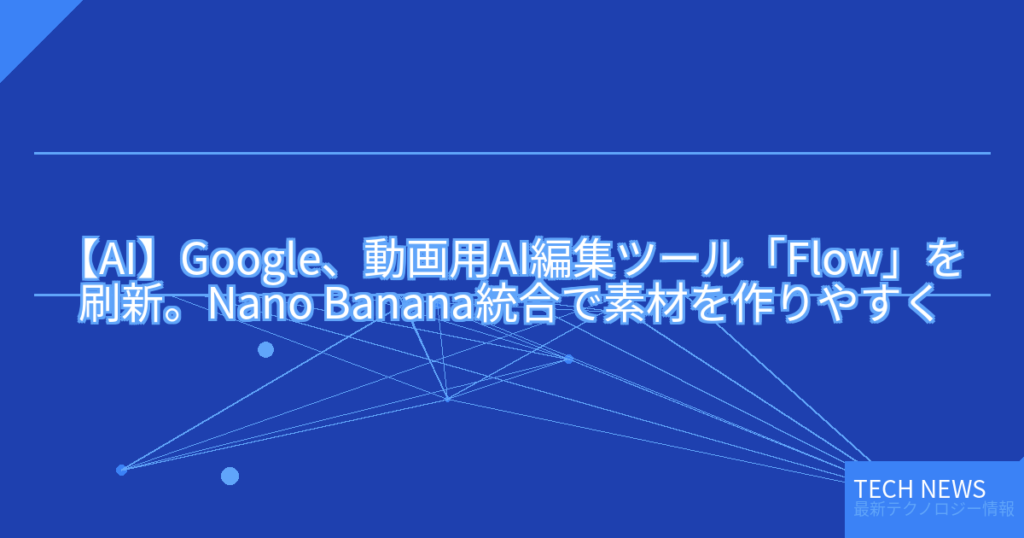 【AI】Google、動画用AI編集ツール「Flow」を刷新。Nano Banana統合で素材を作りやすく