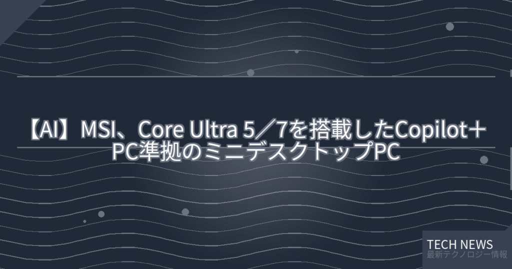【AI】MSI、Core Ultra 5/7を搭載したCopilot+ PC準拠のミニデスクトップPC