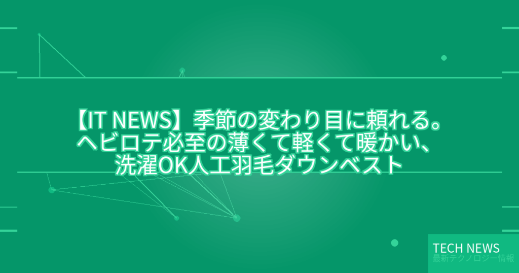 【IT NEWS】季節の変わり目に頼れる。ヘビロテ必至の薄くて軽くて暖かい、洗濯OK人工羽毛ダウンベスト