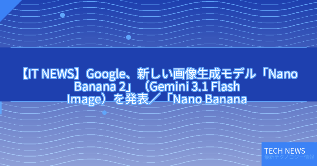 【IT NEWS】Google、新しい画像生成モデル「Nano Banana 2」(Gemini 3.1 Flash Image)を発表/「Nano Banana Pro」の高度な知識と品質と「Flash」モデルの速さを兼ね備える