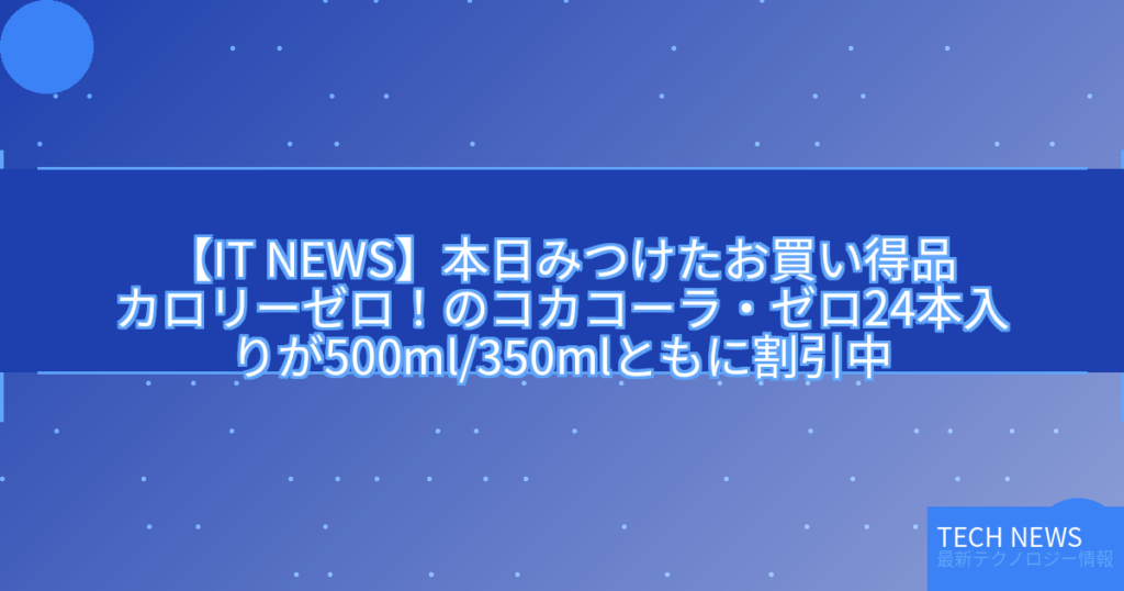 【IT NEWS】本日みつけたお買い得品カロリーゼロ!のコカコーラ・ゼロ24本入りが500ml/350mlともに割引中