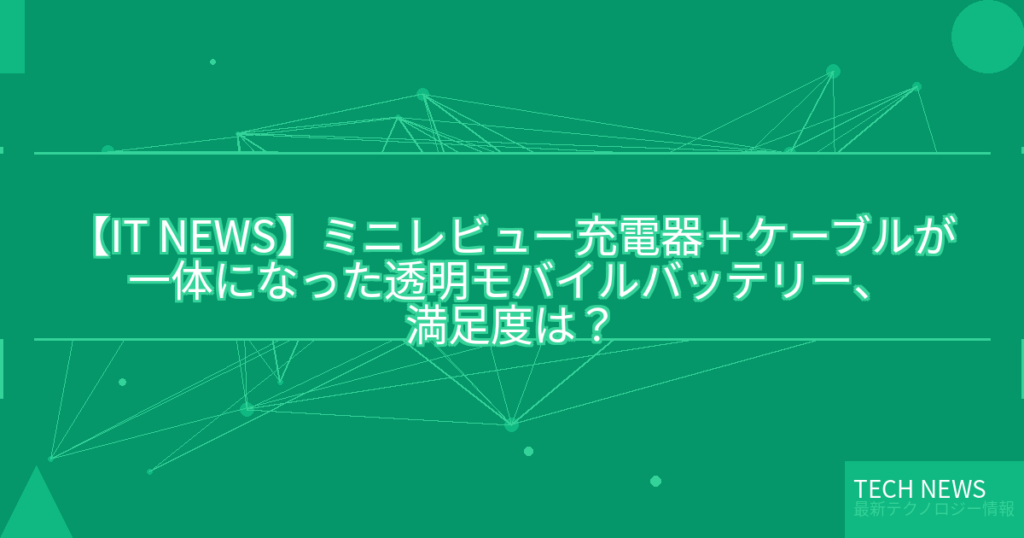 【IT NEWS】ミニレビュー充電器+ケーブルが一体になった透明モバイルバッテリー、満足度は?