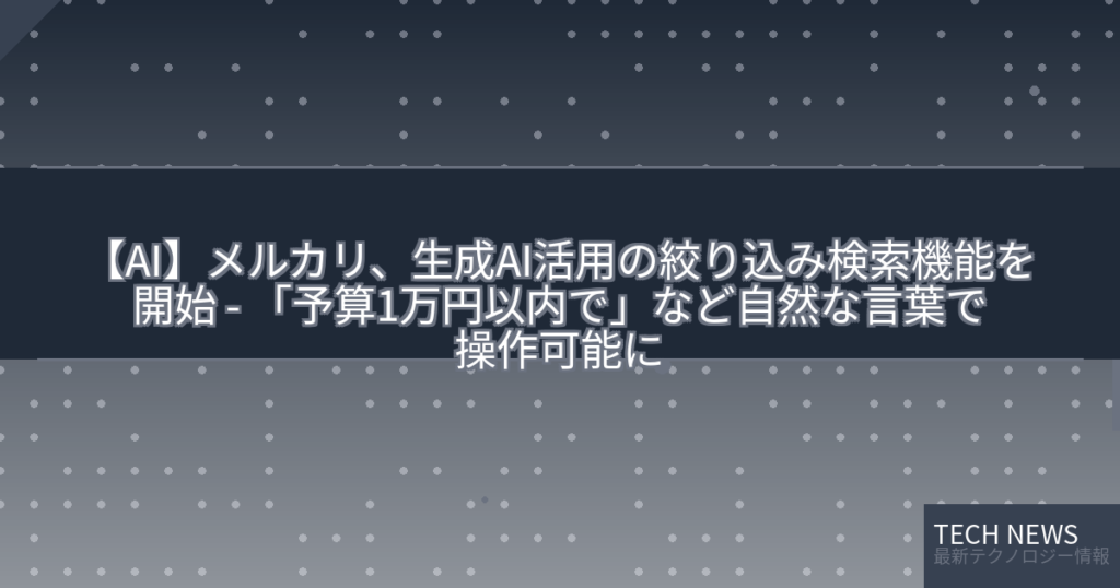 【AI】メルカリ、生成AI活用の絞り込み検索機能を開始 – 「予算1万円以内で」など自然な言葉で操作可能に