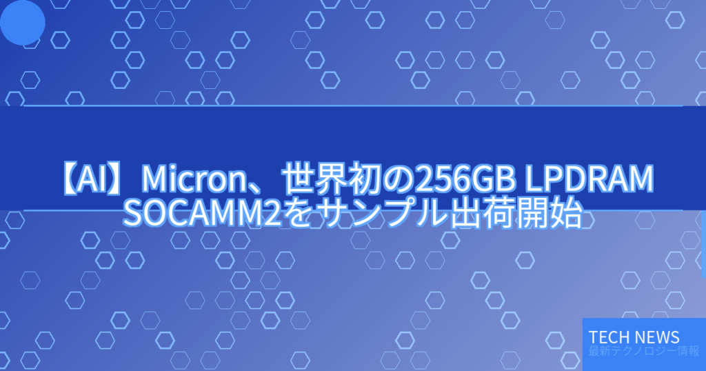 【AI】Micron、世界初の256GB LPDRAM SOCAMM2をサンプル出荷開始