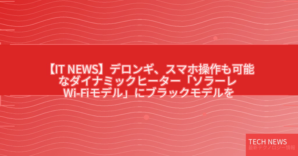 【IT NEWS】デロンギ、スマホ操作も可能なダイナミックヒーター「ソラーレ Wi-Fiモデル」にブラックモデルを追加 クラウドファンディングを開始