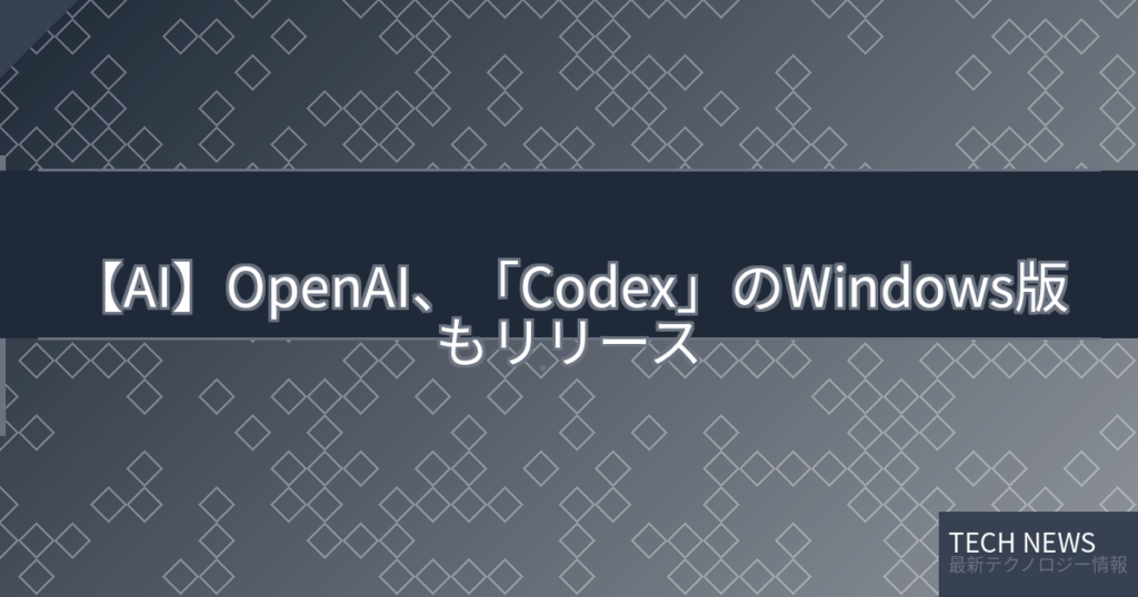 【AI】OpenAI、「Codex」のWindows版もリリース