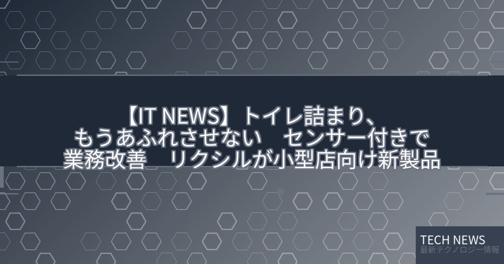 【IT NEWS】トイレ詰まり、もうあふれさせない センサー付きで業務改善 リクシルが小型店向け新製品
