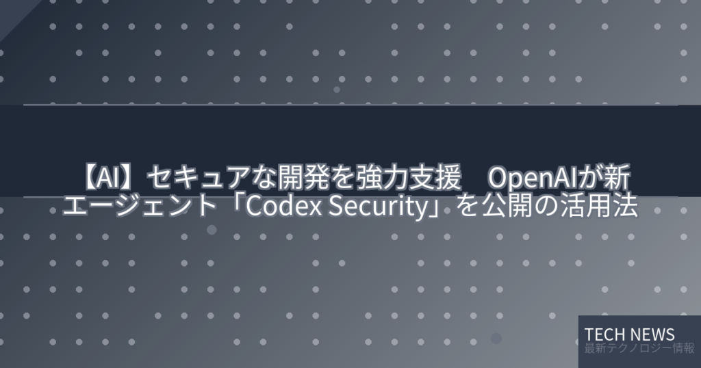【AI】セキュアな開発を強力支援 OpenAIが新エージェント「Codex Security」を公開の活用法
