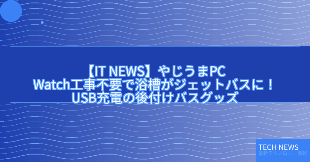 【IT NEWS】やじうまPC Watch工事不要で浴槽がジェットバスに!USB充電の後付けバスグッズ