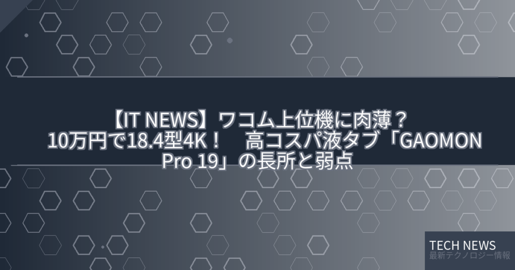 【IT NEWS】ワコム上位機に肉薄? 10万円で18.4型4K! 高コスパ液タブ「GAOMON Pro 19」の長所と弱点