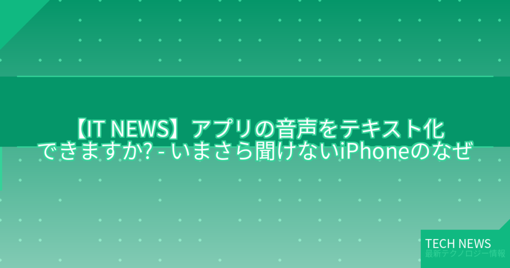 【IT NEWS】アプリの音声をテキスト化できますか? – いまさら聞けないiPhoneのなぜ