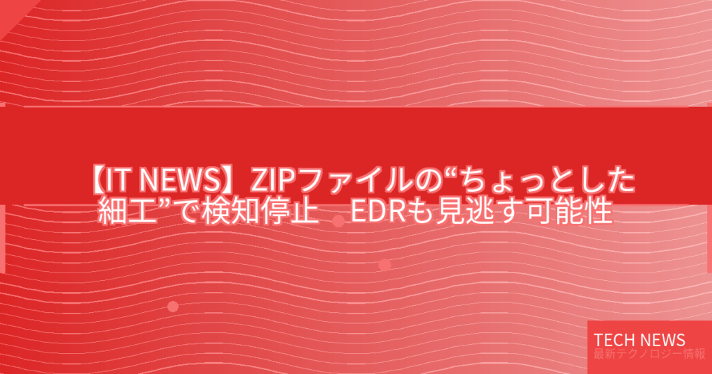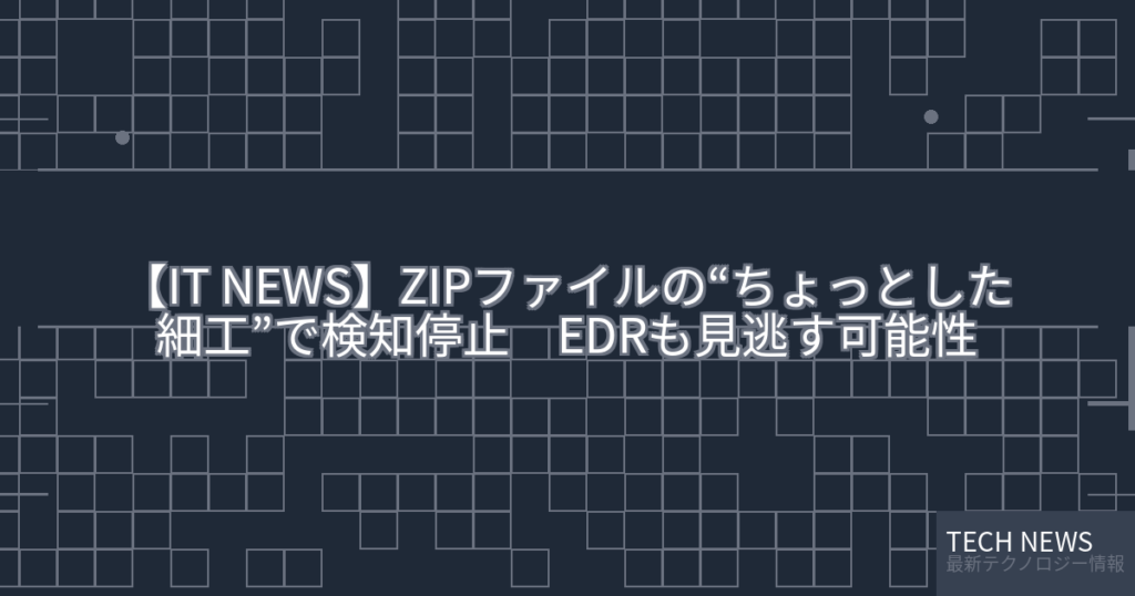 【IT NEWS】ZIPファイルの“ちょっとした細工”で検知停止 EDRも見逃す可能性