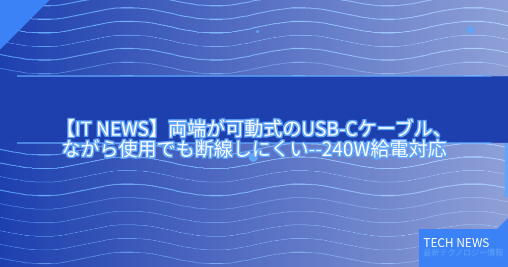【IT NEWS】両端が可動式のUSB-Cケーブル、ながら使用でも断線しにくい–240W給電対応
