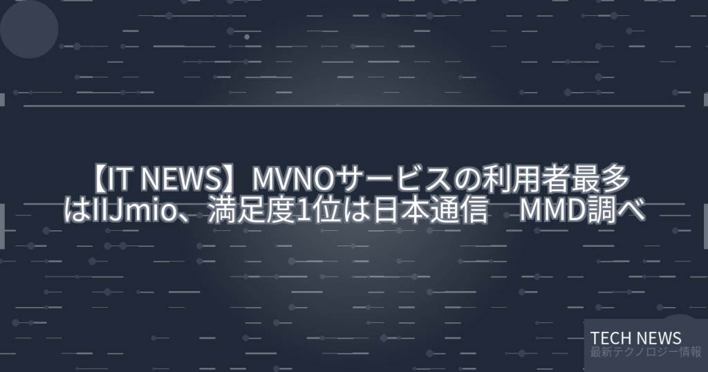 【IT NEWS】MVNOサービスの利用者最多はIIJmio、満足度1位は日本通信 MMD調べ