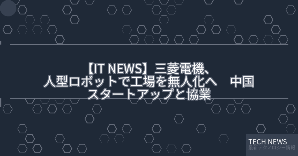【IT NEWS】三菱電機、人型ロボットで工場を無人化へ 中国スタートアップと協業