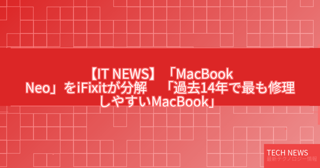 【IT NEWS】「MacBook Neo」をiFixitが分解 「過去14年で最も修理しやすいMacBook」