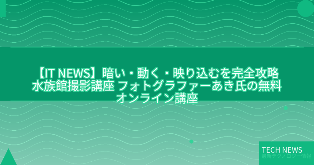 【IT NEWS】暗い・動く・映り込むを完全攻略 水族館撮影講座 フォトグラファーあき氏の無料オンライン講座