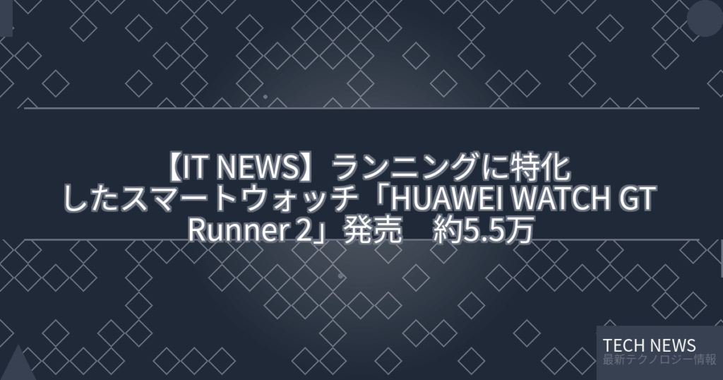 【IT NEWS】ランニングに特化したスマートウォッチ「HUAWEI WATCH GT Runner 2」発売 約5.5万