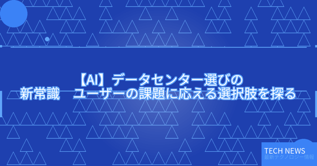 AI需要の圧倒的な増加がデータセンター選びの常識を大きく変えつつある。... -