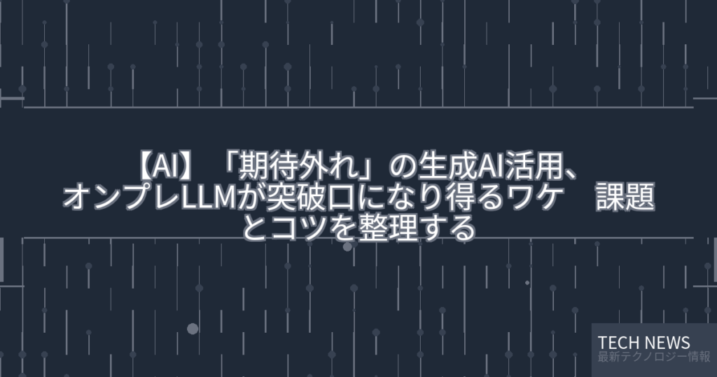 【AI】「期待外れ」の生成AI活用、オンプレLLMが突破口になり得るワケ 課題とコツを整理する